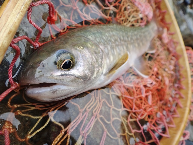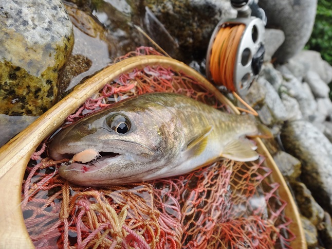 で、初日はT君に福島県で遊んで頂きました♪ 雨ザーザー&増水でしたが、T君はGOODなヤマメを! |