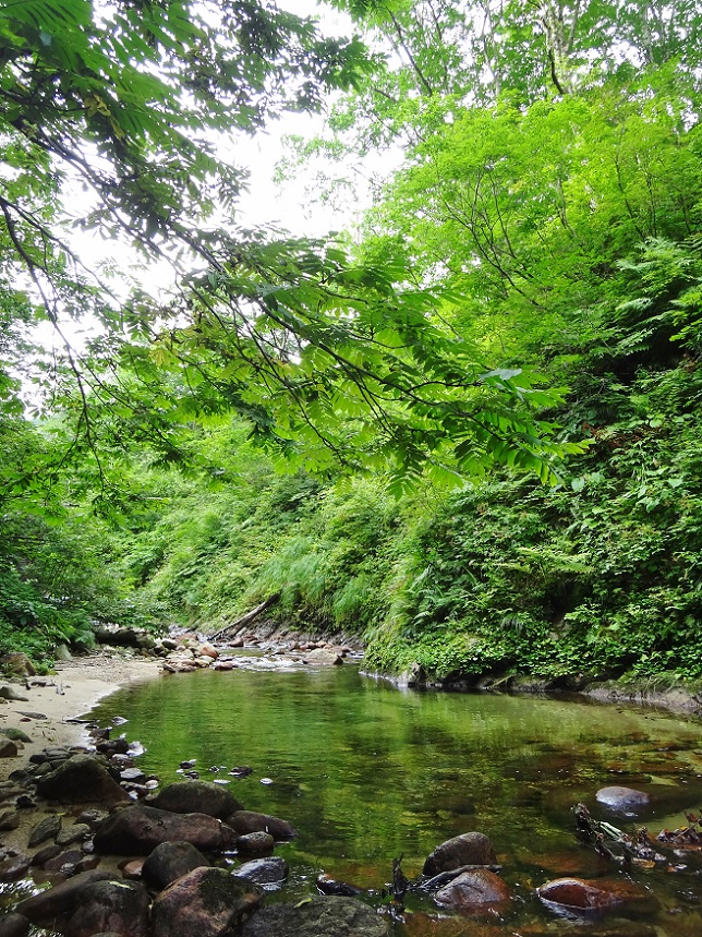 増水し始めたので、2時間ちょっとだけで強制終了・・・ 3日目は曇り時々晴れの予報♪ なので、調査したかった沢へ! |