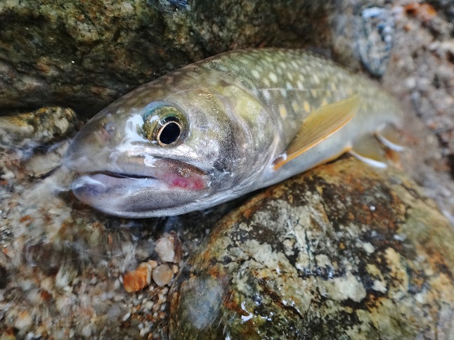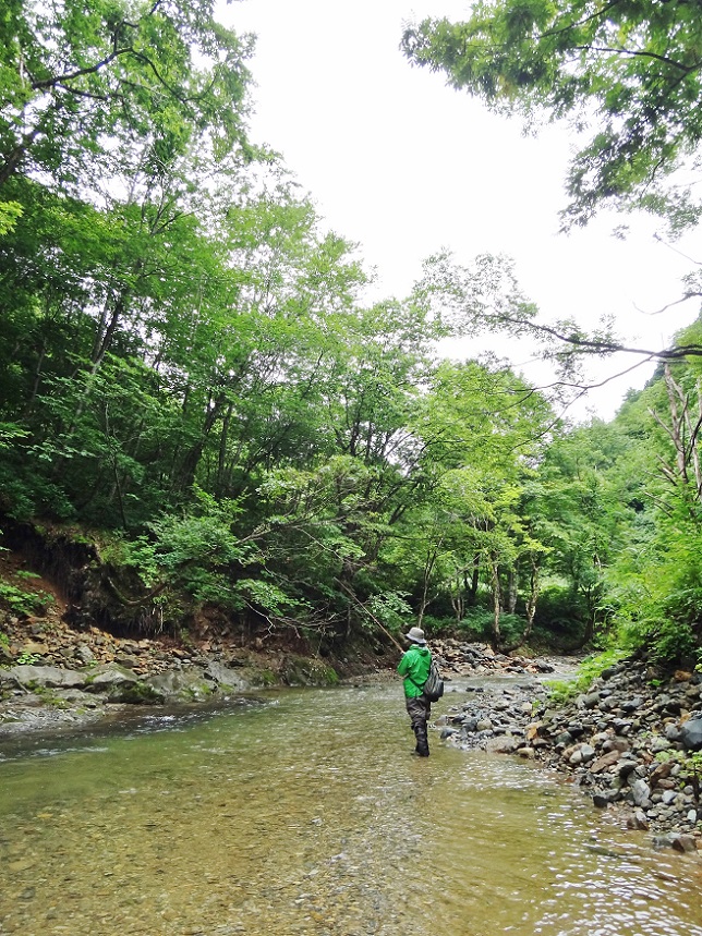 76歳のFFマンは、とても健脚でお世辞抜きに60代前半位にしか見えず ワタクシ渓歩きで後れを取ってしまいました(笑) で、その後は魚の反応も少なく、アブがモノ凄かったのでFFマンとお別れして別の場所に・・・ |