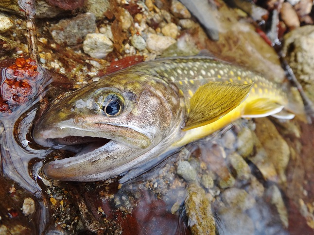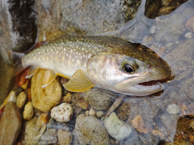 歩き始めて最初のポイントでは、以前より少なめですがイワナは健在でした♪