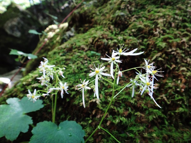 大文字草がひっそり咲く小沢で、のんびりフリフリ・・・ |
