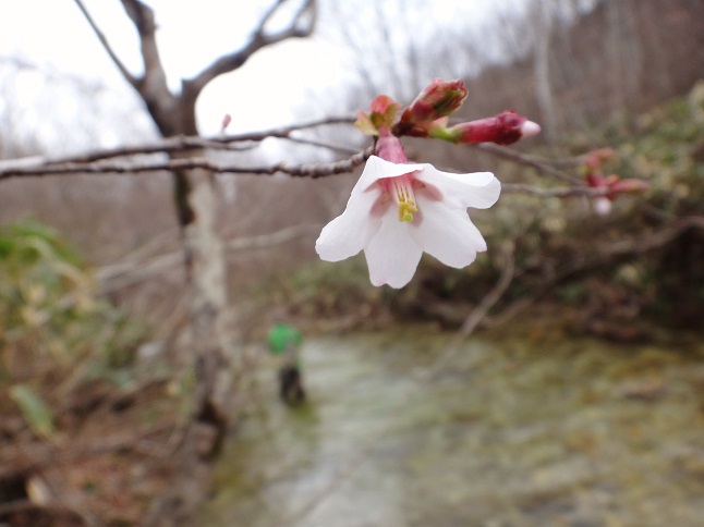 まだ山桜が満開にもなってません T君の背中も少し寒々しい・・・? |
