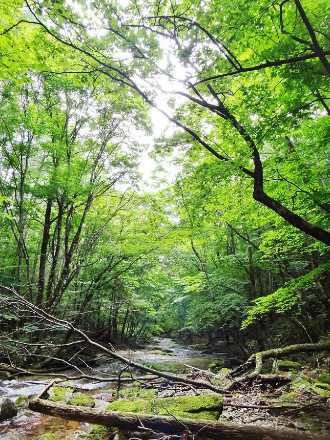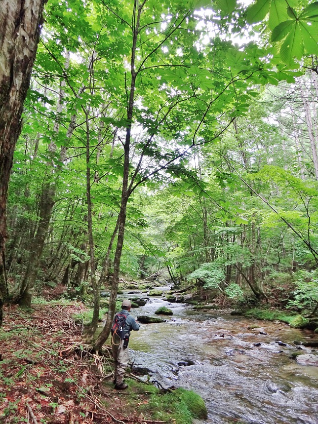 森の中を滔々と流れる豊かな流れを遡ります! |