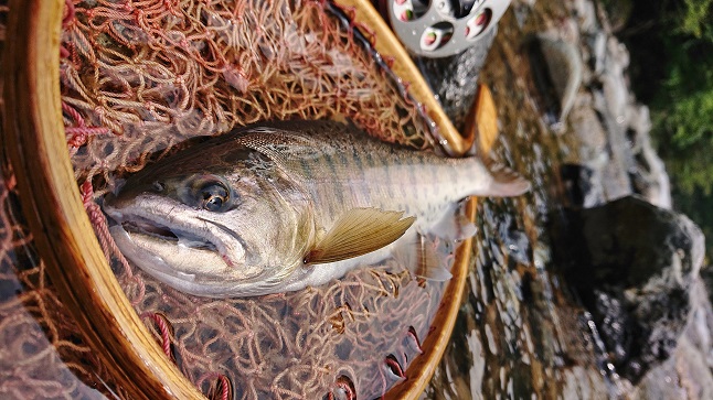 こちらも渇水&ノロ&最近の大水の影響があるようでしたが・・・ 早々に 9寸ヤマメ(喜) |