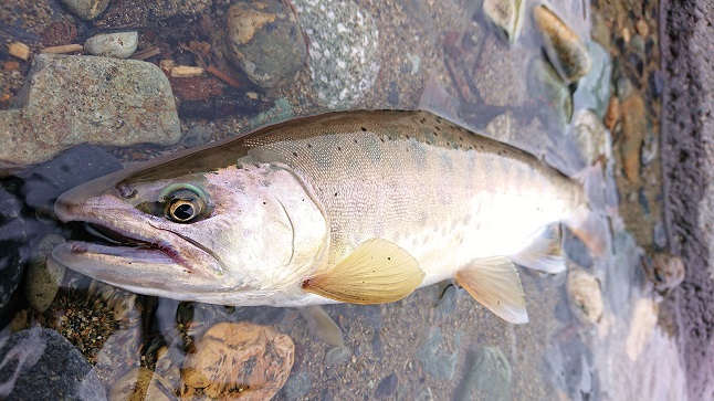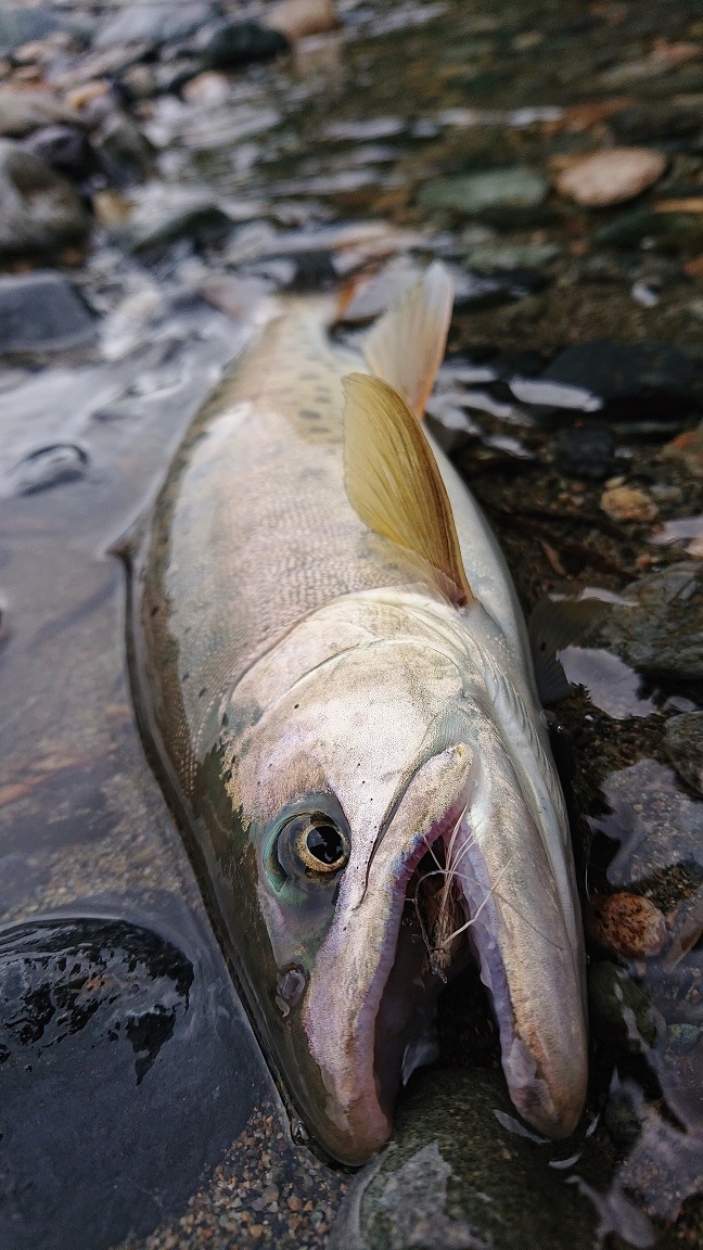 強い流れの向こう側をメンディングで狙って連発(喜)