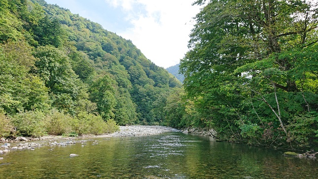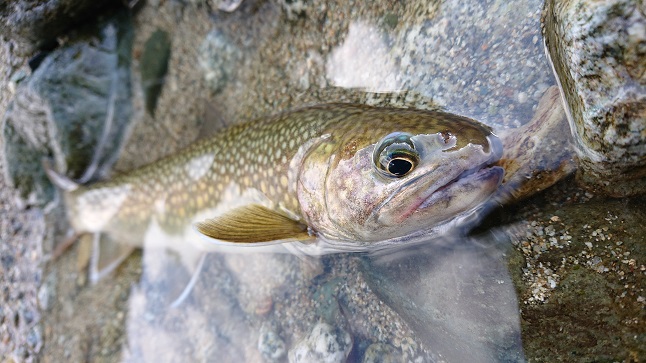 何とか28cmを筆頭に、綺麗なイワナ達に遊んでもらいました♪ 【最終日】 翌日からお仕事だし、正直疲れてたので午前中で撤収の予定でしたが・・・ 2日目にお会いした方から『〇〇〇は尺上イワナが沢山居るよ〜』って、聞いてしまって そんな上手い話無いよな?と思いつつ検索したらナント禁漁区(笑) なので予定通り、新規開拓にw |