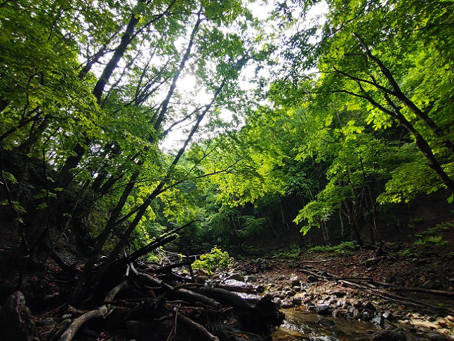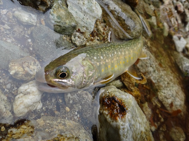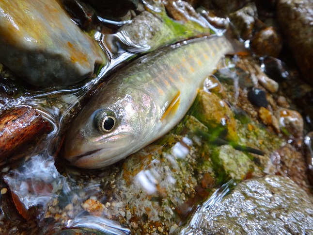 魚鱗草?銀竜草?が群生する沢で木漏れ日を浴びながらのんびりフリフリ(^O^)
