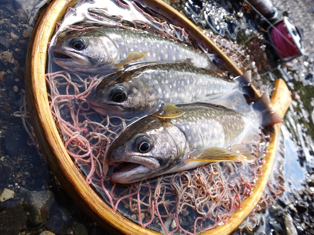 お次は木の枝が垂れ下がった早瀬に仲良く3匹並んでいたので 下から順にお集まりいただきました(嬉) |