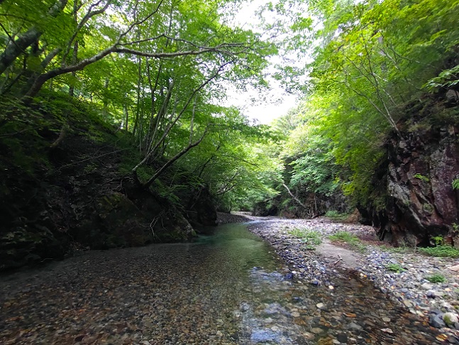 開けた渓でフリフリしたかったので、2か月ぶりの沢に 天気も良く、先行者もいない様子(喜) |