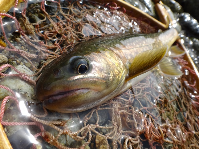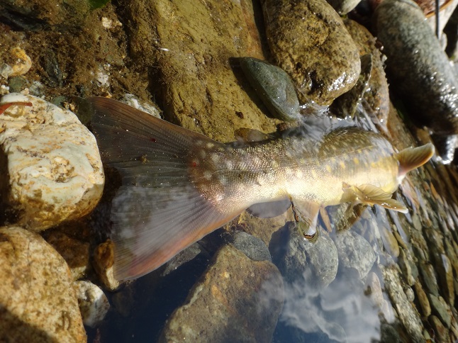 何とか良型イワナが釣れてくれてホッとしていたら・・・ |