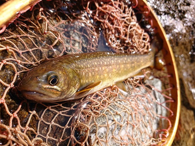 初めての渓は積雪が結構残ってましたが、可愛いイワナで無事解禁(喜)