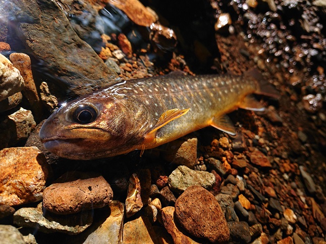 木漏れ日の朝陽が気持ち良く、イワナも順調に釣れ始めましたが・・・ 昨年には無かった?鹿の白骨死骸に驚き、避けて歩いていたら水中にももう一体の白骨死骸(>_<) 思わず声が出てしまったものの我慢して上流に行ったところ、トドメの3体目白骨死骸出現w こうなるとビビりの自分はギブアップ、速攻で納竿しました(笑) |