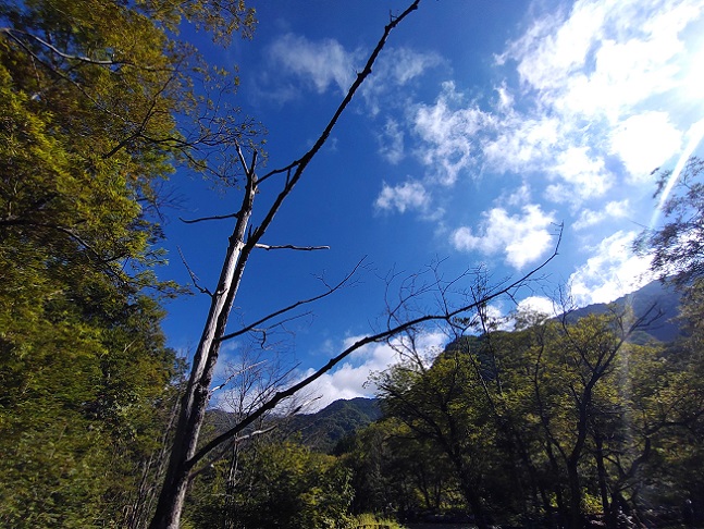 熊鈴を付けたストックが無いことに気付き、数百mほど後戻り(笑) そして、無事見つけて戻っている時に右足に違和感が・・・ |