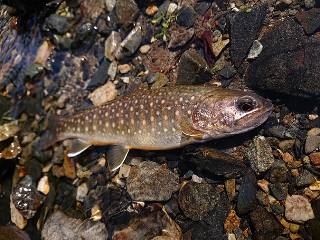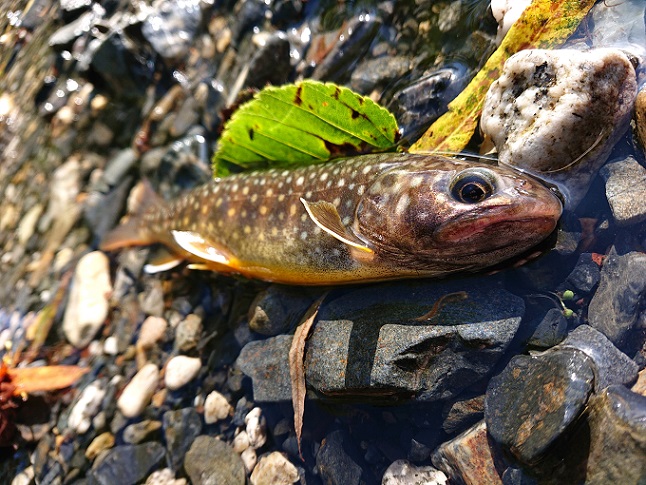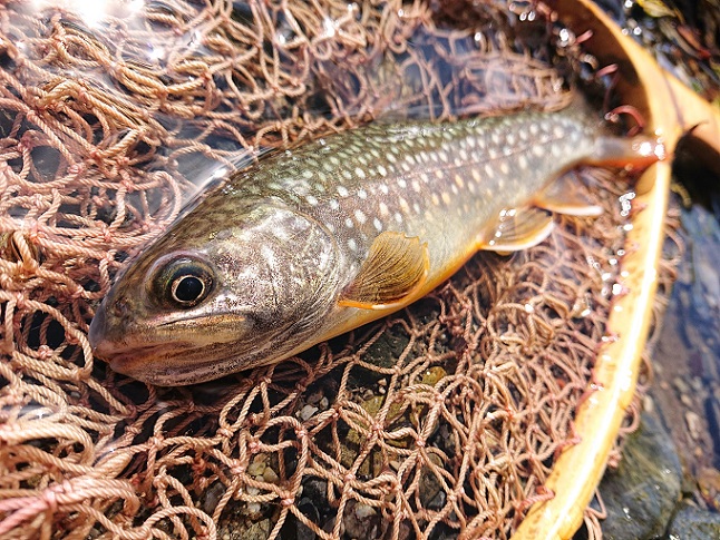 相変わらずの渇水でイワナ達は神経質でしたが、順調に釣果を伸ばしてきたところで・・・ |