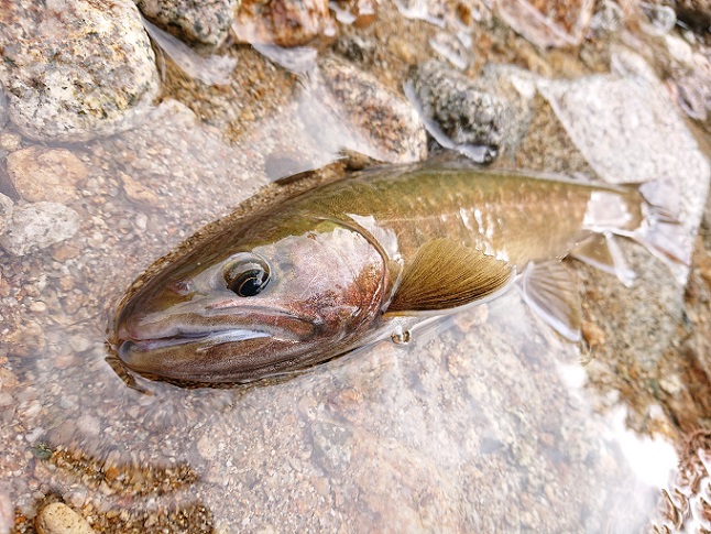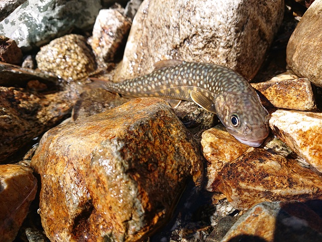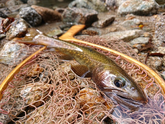 こんな偶然あるんですね?と談笑しながら登山道を歩き、お互いの健闘を祈り思い思いのポイントへ(^^) そして・・・ 釣り始めのポイントから、いきなり尺イワナ♪ |