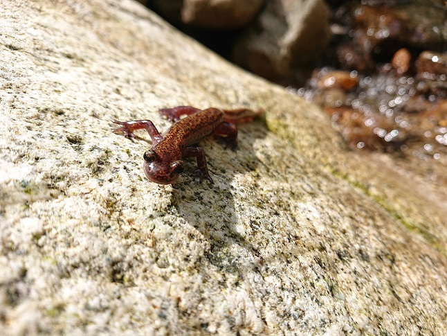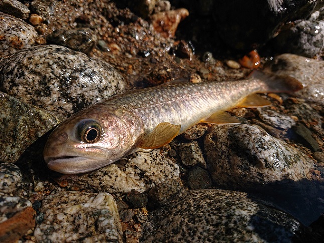 魚影が薄いので、大文字草と珍しいサンショウウオ(10数cm)を愛で、早々に一時退渓(笑) まだまだ山を下りるには早過ぎるので、下流にて少しフリフリ 足跡だらけでしたが、意外とポツポツ釣れて〆 |