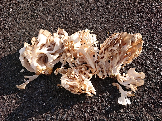 マイタケも見つけて大満足の初日でした(嬉) ※マイタケは後続の釣り人にお裾分けした後の画像です/採り方が下手ですね(-_-;) 2日目は更に魚影が薄い渓にw |