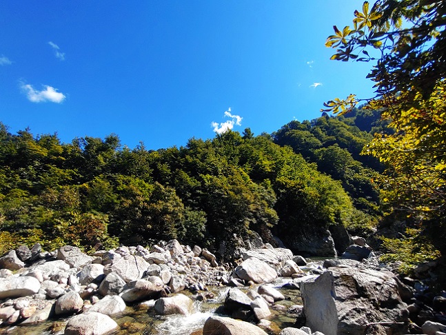 此処はやっぱり景色を楽しむところ・・・??? 誰も来ない渓を独り占めして、可愛いイワナ達に癒していただきました(^O^) |