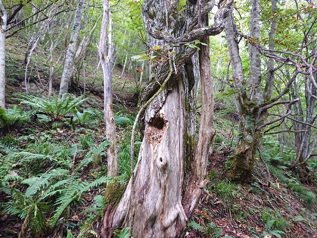その後、余り釣れないまま早々に折り返し、キツツキ?小動物の巣?がある細沢に入るも足跡だらけw ※あとでYoutubeの方の後追いと判明(-_-;) |