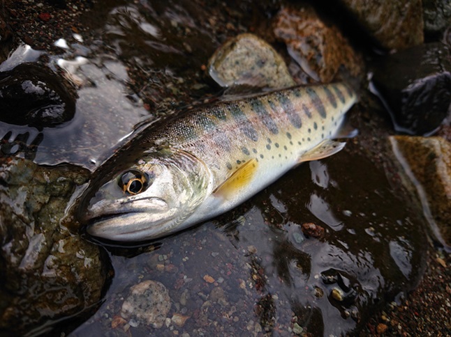 なんとかヤマメの顔を拝めたので、数年ぶりのイワナの渓にも行きましたが小イワナのみw オマケに山ヒルの巣窟になってました(>_<) |
