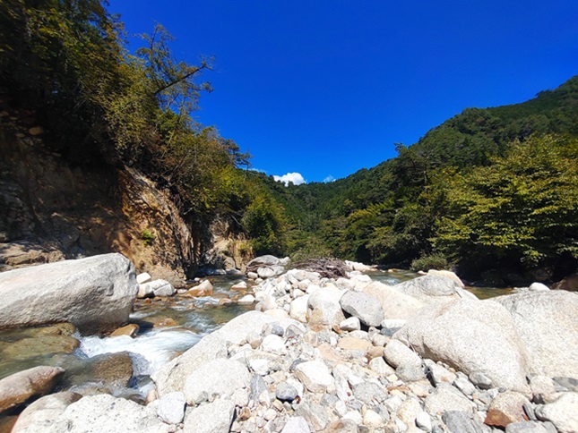 やっとのことでお昼に入渓、渓を横切るのに必死でしたw |