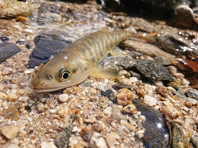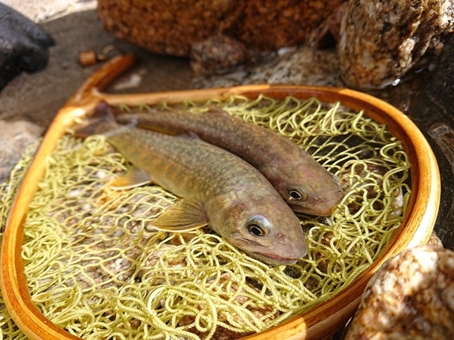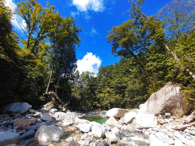 途中、魚影が薄いエリアがありましたが、崩落地をいくつか超えるとプールでユラユラ泳ぐイワナ達を発見(喜) |