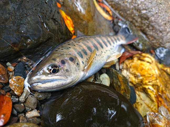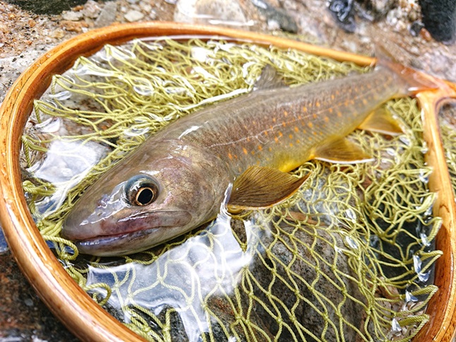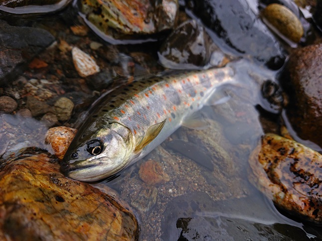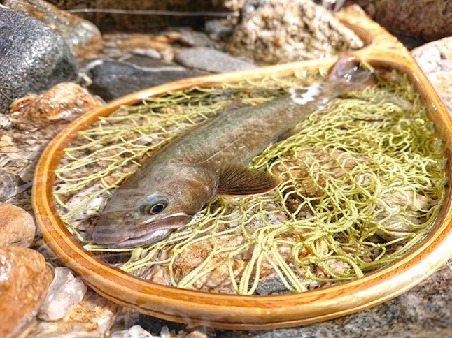 最後は帰りながらポイントを覗き、往路で見つけた大きな魚影をニンフで仕留めて〆 9寸でしたが良いヤマトイワナでした(嬉) そして2日目・・・ のっけから行く所々で増水&先行者で、ポイント難民に(# ゚Д゚) |