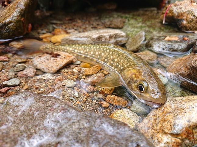 オマケに魚影が極端に少なくなっているような!? それでも諦めずに遡っていくと・・・ |
