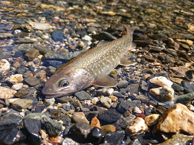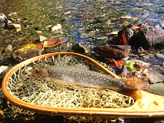 イワナも健在♪ ただ、いつもより釣り人や山菜等の人の気配もなく、なんか今日は妙に静かだな? と、少々違和感を感じながらフリフリ・・・ |