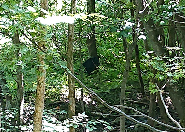 何だか嫌な勘が働いたので、お昼前に退渓(賢) で、林道を戻る途中、でっカい牡鹿が横切りビビるw ビビらすなよー、と思ったのも束の間!?黒い生き物が視界に( ゚Д゚) |