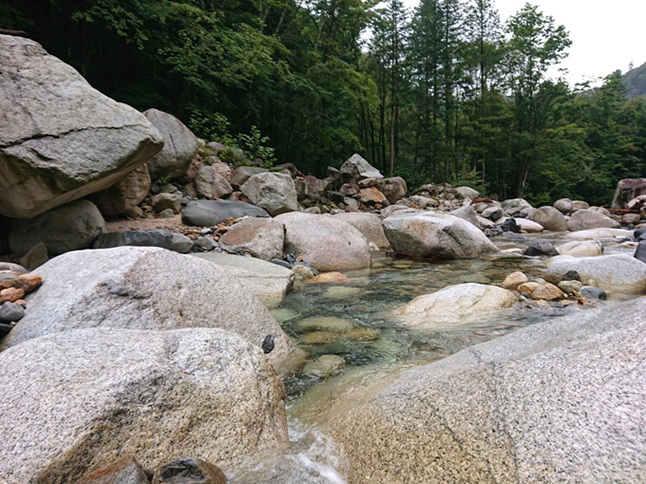 ゚Д゚)# ようやく長野にに来れたものの、本流筋は増水&濁流だったので車止めから延々上流へ歩きます(汗) 此方も大水が出たようで、ポイントが砂や砂利で埋まっていました(^_^;) |