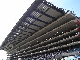 長男の希望?で、3年ぶりの競馬場へ(喜) 前回、中山でペリエを見て以来なので、府中は一体何年ぶりだろう? 府中本町駅の改札を抜けると競馬一色! 妻と息子達をおいて、自然と早足になってくる(笑) しかも、明日はGT NHKマイルカップなので 既に泊まりで並んでいるファンがちらほら 凄い・・・ エントランスを抜けると、圧巻のスタンド! 久しぶりに見たけど、デカ過ぎて写真に入りません 加えて、GWなので人が一杯!!! で、子供達の事を考えて内馬場に行くと 『ここじゃ、お馬さん見えないじゃん!』と息子達からお叱り! 他のお子さん達は遊具とかに夢中で、馬なんか見ていないのに ウチの子達は・・・末恐ろしい はいはい、じゃあパドック見に行きますか♪ うーん、人だかり・・・ ゴール付近に移動しますよ〜 またまた人だかり・・・ もう面倒なので、ずっとゴール付近に居ようぜ(疲) で、ウイナーズサークルで後藤騎手とも挨拶出来たし タイガーカフェと小島太調教師の鼻の穴も見れたし やっぱり、生の競馬は迫力あるねぇ♪ これで、馬券が1枚でも当たっていれば・・・(涙) 財布の中身は全治2週間! |