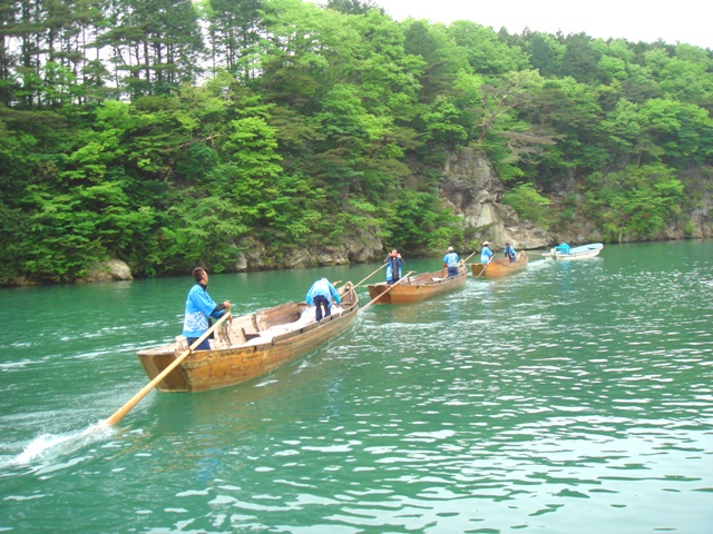 | 最後の別れ際に、真ん中の船頭さんが 『良い旅を〜!』 と嬉しい言葉(粋) | ||