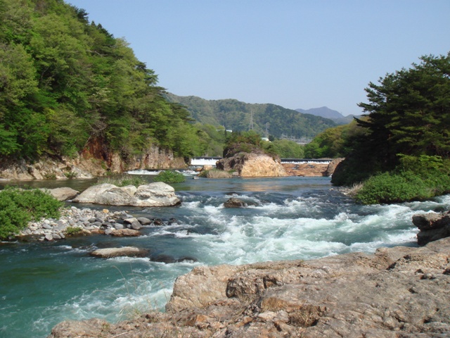 | 大渋滞が予測されましたが、意外とスンナリ栃木県へ到着いたので 鬼怒川の高徳中岩河川公園でしばし散歩 友達家族の到着を待ちます・・・ |