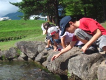 | 興味津津 | 池で魚探し | 鯉に夢中(呆) |