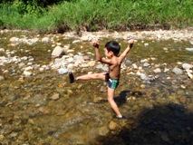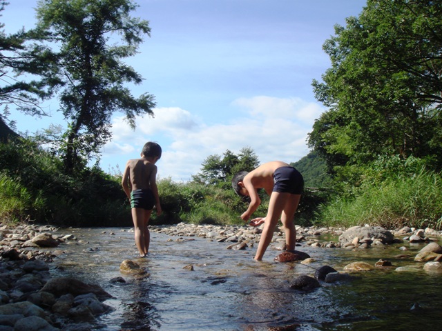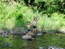 早めの昼ご飯の後は、川でジャブジャブ(喜) |
