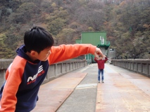 | で、何のことはないGW初日の変わらぬ大渋滞を妻に運転させ・・・♪ これまたいつも遅れて来る友達家族を、いつもの五十里ダムで待ちます(苦笑) |