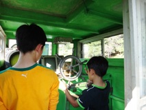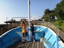 | 池に漁船が浮いています(嬉) | バッタ獲りに夢中♪ | 舵は回りません(汗) |